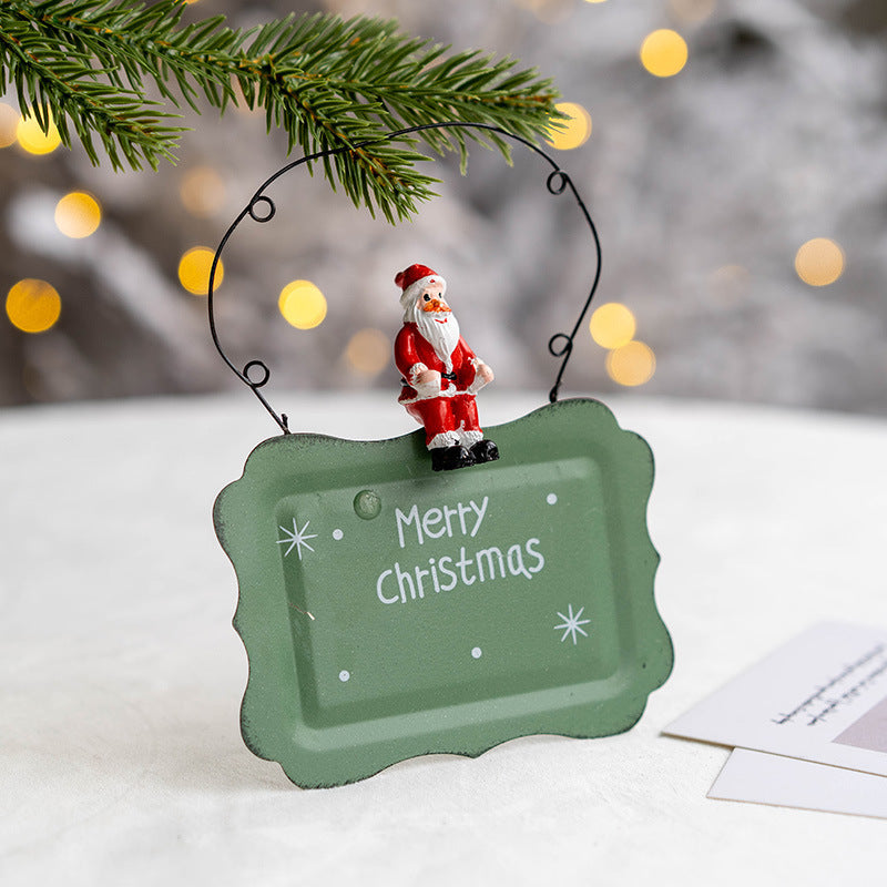 Christmas Iron Door Hanging Old Man Snowman Elk Decorative Pendant